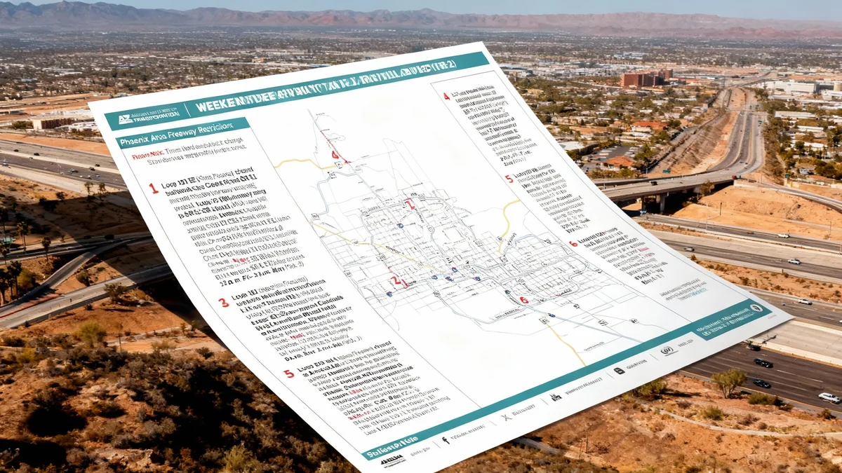 Phoenix area freeways will see multiple closures and restrictions this weekend for improvement projects, impacting Loop 101, I-17, and Loop 202. Drivers should plan alternate routes.